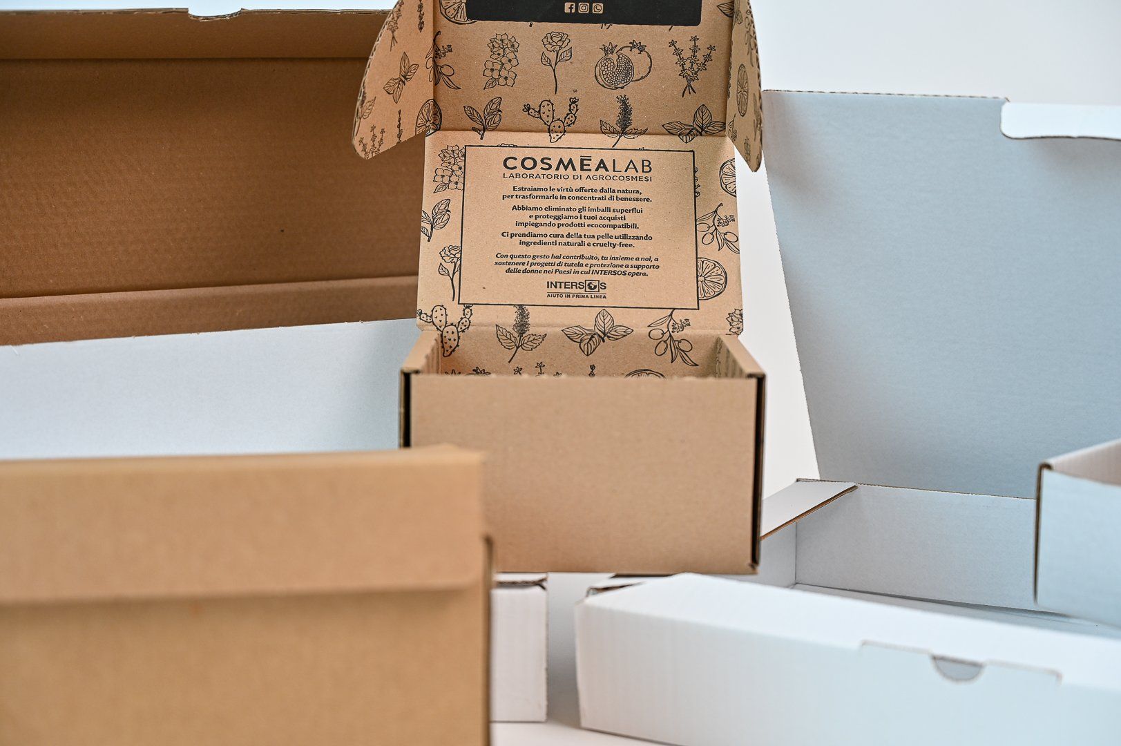 The presence of several highly flexible production lines allows the total customisation of die-cut packaging, according to our customers' needs. This type of packaging offers better characteristics than the common American box in that it allows a more adequate valorisation of the product, adapts more easily to products of particular dimensions and has superior aesthetic quality.
